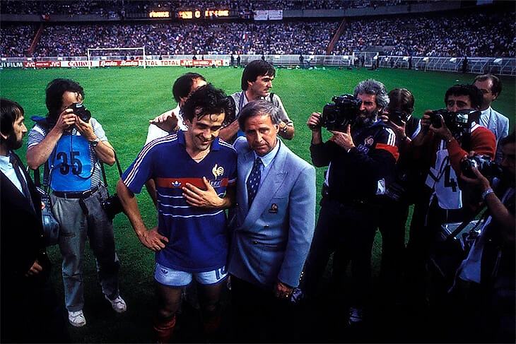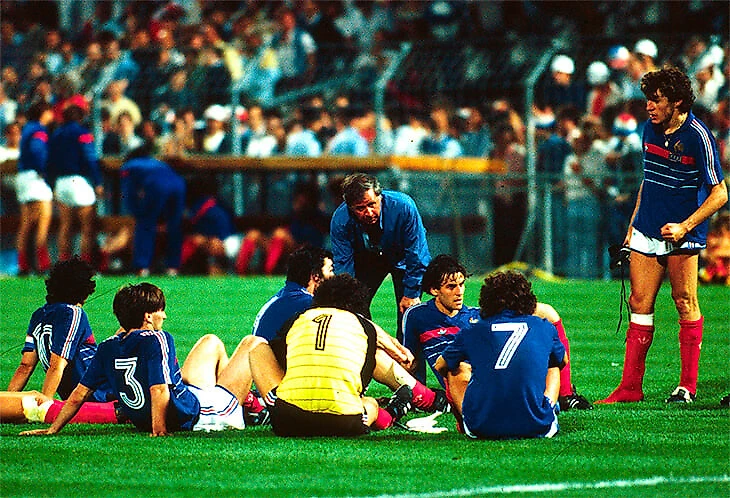 Свою сборную Мишель выстроил в 4-4-2. Тигана и Жиресс играли широко, почти на флангах, а Платини – высоко, близко к роли ложной девятки. Вся четверка постоянно менялась позициями. Франция пропускала почти в каждом матче, но забивала обычно больше соперника и к полуфиналу подошла с одним поражением. Там ее ждала Западная Германия.