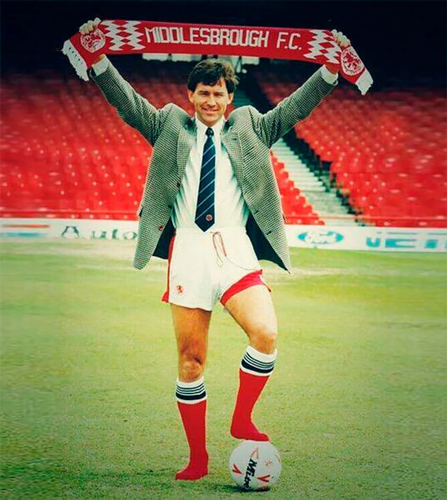 Летом 94-го «Мидлсбро» объявил о переходе капитана «МЮ» Брайана Робсона. Презентация была такой же скучной, как и другие, и забылась бы так же быстро, если бы не странный прикид главного героя. На Брайане был распахнутый пиджак, галстук и рубашка, неожиданно заправленная в шорты, а ниже – красные гетры и мяч под босой ногой.