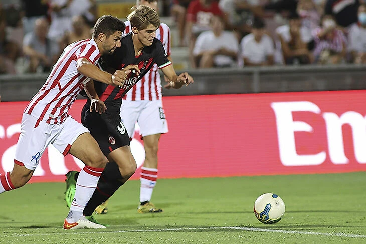 В последнем сезоне «Милан» эволюционировал из очень прямолинейной команды в хорошо продуманную вертикальную систему со сложным обменом позициями, но так и не разрешил ключевой недостаток – доведение мяча до штрафной. Пиоли использовал три простые и предсказуемые опции: проходы Тео, длинные передачи на столба и забросы на ход Леау. Компактные соперники вроде «Фиорентины» легко перекусывали чемпиона: забирали пространство у Тео, запирали громоздких девяток в тесных коробках и ловили Леау в офсайды. Позиция десятки проседала.