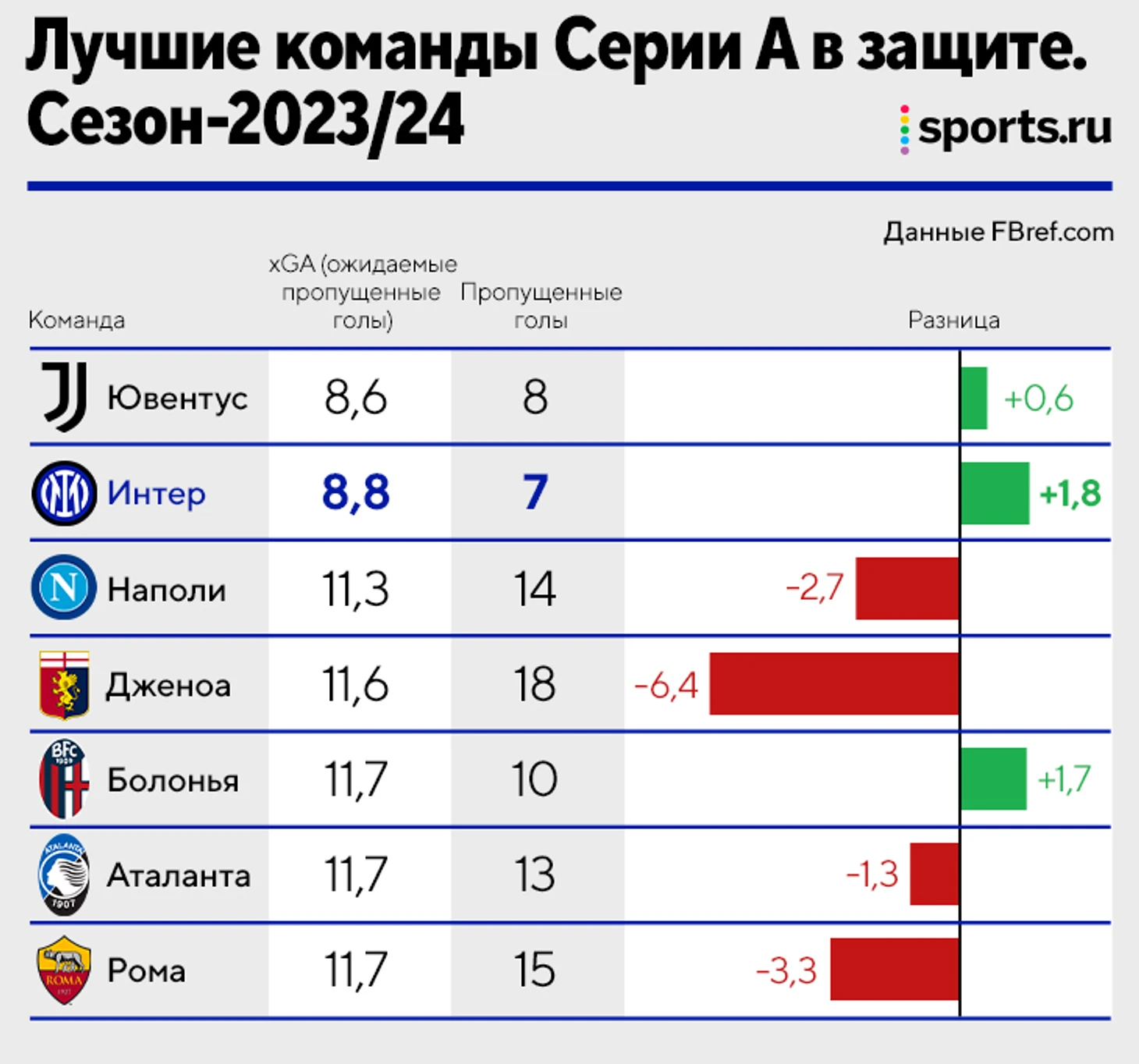 Такую же разницу Зоммер обеспечивает на фоне конкурентов. Как бы хороши ни были миланцы, несравненными они точно не стали. «Юве» с непроходимым Бремером позволяет соперникам еще меньше. «Болонья», «Рома» и «Наполи» отстают не слишком сильно. Даже «Дженоа» и «Аталанта» держатся в топе. Почти у всех этих клубов средняя дистанция допущенного удара больше, чем у «Интера». Но лидер пропустил меньше всех, потому что вратарь тащил чаще.