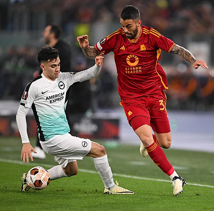 Тактическая перестрелка с «Брайтоном» привела к тому, что команды практически дублировали друг друга схемами 3-5-2 без мяча. Разница заключалась в том, что английскую тройку составили профильные центрбеки, а у римлян слева играл Спинаццола. Де Росси намеренно перенаправил игру в его зону. «Брайтон» остерегался атаковать справа, чтобы не раскрываться перед взрывным итальянцем, но все равно страдал: во владении Эль-Шаарави намеренно уходил вширь, сковывая Лэмпти (единственный защитник, который мог выдержать спринты Лео), и Спинаццола оставался один на один с Буонанотте – легким, медленным, слабым.