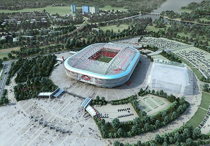 Зато к ноябрю 2006-го все получилось у Леонида Федуна. Договорились, что новый стадион построят в районе аэродрома Тушино на северо-западе Москвы между Волоколамским шоссе и излучиной Москвы-реки.