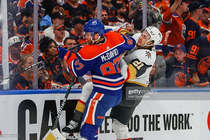 Штатный битрайтер «Эдмонтона» на The Athletic Дэниел Нюджент-Баумен в своей статье о причинах вылета «нефтяников» на первое по порядку место (не первое по степени важности, но мы же люди, мы обычно запоминаем первое и последнее) поставил судейство. Дэниел заявляет, что судейство было не в пользу «Ойлерз» по меньшей мере в трёх матчах — я прошу прощения, а с какого перепугу оно должно быть В ПОЛЬЗУ? Судейство должно быть беспристрастным, недаром у Фемиды глаза завязаны. Не должно быть оно ни в пользу «Эдмонтона», ни в пользу «Вегаса». Судьи много ошибались по ходу серии, но говорить, что судьи убили «Эдмонтон», можно только в двух случаях: если вы болельщик «Эдмонтона» или если вы ничего не знаете о правилах хоккея. Если же вы всё же хотите дискуссии, то пожалуйста.