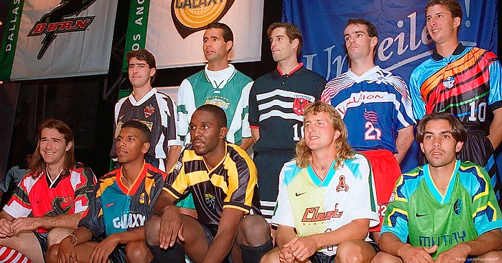 Техническим спонсором всей лиги изъявила желание стать Nike, но руководство MLS решило, что не стоит так сразу отдаваться целиком, и предложило экипировать лишь половину, дав Adidas, Reebok, Puma, Mitre шанс. Задачей было привлечь в зарождающуюся лигу все компании с именем в мировом футболе. Это решение оказалось провидческим – Nike решила раскрасить новую лигу во все цвета радуги, породив просто невероятную цветовую какофонию. На презентации MLS в 1995 году, пожалуй, лишь представителю Adidas из DC United не было неуютно в попугайской форме. Теперь, конечно, о буйстве красок 90х можно лишь с улыбкой поностальгировать: