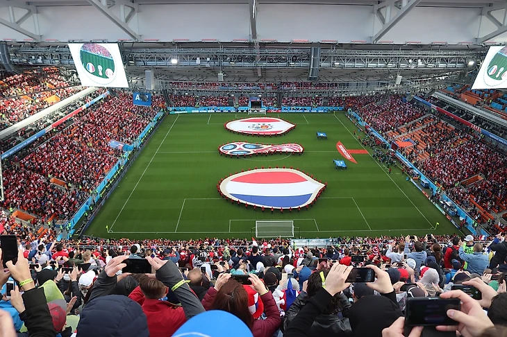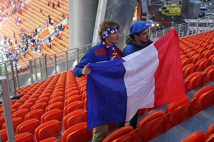 Фанаты Перу сидели на нижних ярусах сектора и, как всегда, зажигали. Остальные трибуны тоже были забиты красно-белыми фанатами. Болельщиков Франции было почти не слышно.