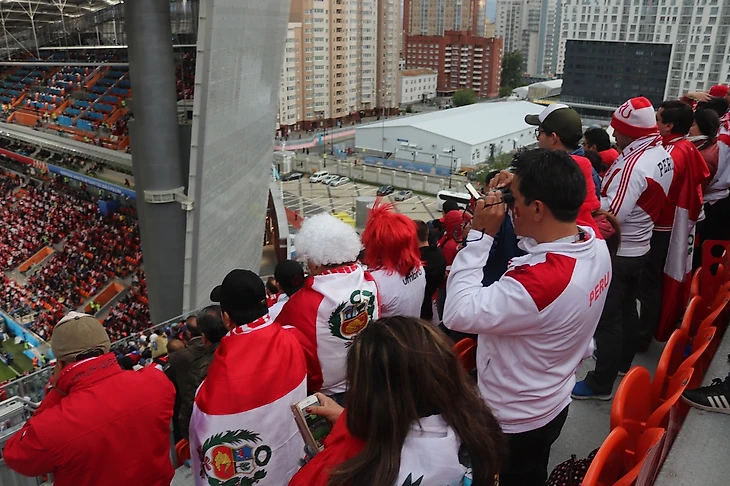 Когда все фанаты Перу начинали одновременно прыгать, трибуну немного трясло. Если бы футболисты Перу забили гол, в Екатеринбурге произошло небольшое землетрясение.