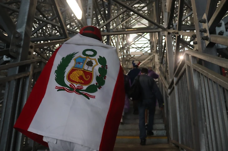 Болельщик Перу поднимается на временную трибуну. Это довольно утомительное занятие. Некоторые устраивали себе передышку между «этажами».