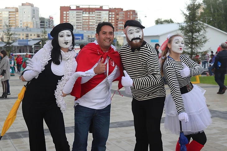 В день матча центр Екатеринбурга заполонили фанаты Перу. Они пели, танцевали и влюбляли в себя прохожих.