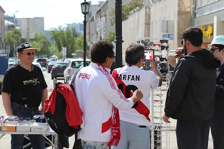 Перуанцы гуляли по городу, фотографировались с достопримечательностями, подбирали солнечные очки, активно общались и знакомились с местными жителями, водили хороводы на фан-фесте и поддерживали сборную Россию.