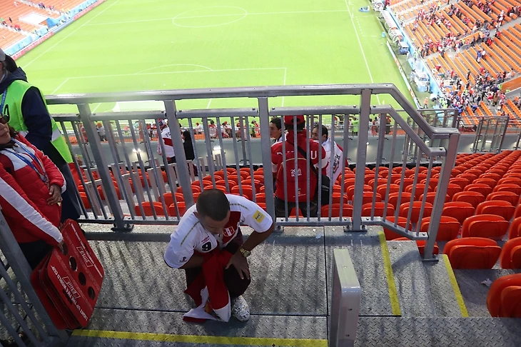 После финального свистка один из болельщиков Перу встал на колени и начал молиться. На его глазах были слезы.