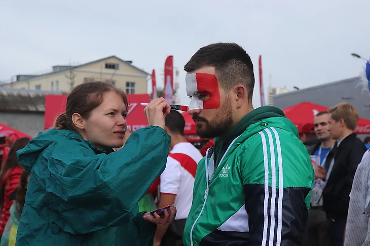 Один особо предприимчивый болельщик в костюме индейца на просьбы сфотографироваться отвечал «за пядисят рублей». Остальные охотно фотографировались с желающими бесплатно. В билетном центре чемпионата за несколько часов до матча выстроилась огромная очередь. Прохожие удивлялись: «приехать за десятки тысяч километров и не купить билет заранее?».