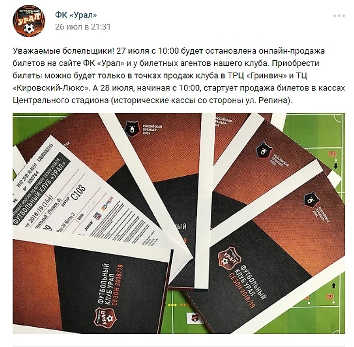 За день до матча ФК «Урал» закрыл продажу билетов на матч с «Анжи» через интернет. Справедливости ради стоит отметить, что болельщиков об этом предупредили заранее. Причина — запланированные технические манипуляции с переносом данных на серверы стадиона (как пишут в официальной группе ФК). Казалось бы, в чем проблема? Купи билет заранее или перед матчем в кассе. Но не все так просто.