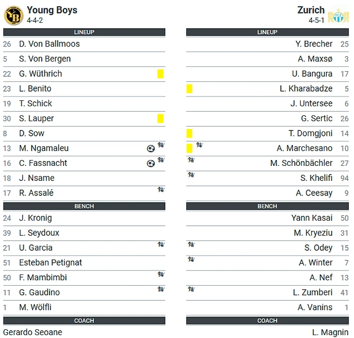 Матч в Берне не стал сенсацией: «Янг Бойз» одерживают очередную комфортную победу. Первый тайм оказался богат на опаснейшие моменты, но во многом благодаря обоим вратарям закончился без голов. После перерыва игра продолжилась в том же ключе, и уже в первые девяносто секунд тайма Янник Брехер, из-за катастрофической ошибки которого забил первый гол «Наполи» в прошлый четверг, ещё дважды спас свою команду. Однако уже на 48-й минуте с очередного углового Кристиану Фасснахту удалось-таки отправить головой мяч в сетку. Следующий гол был забит после разыгранной как по учебнику контратаки, и надежды «Цюриха» увезти очки совсем поблекли. Гости практически перестали атаковать, а у YB были шансы и довести счёт до разгромного: например, Нгамалё команду Маньена, видимо, пожалел. «Цюрих» всё ещё выглядит неубедительно, команде не хватает запала, какого обычно ей не занимать. Цюрихцы единственные ещё играют в Европе – завтра, видимо, это завершится, но ответную игру в Неаполе надо-таки сыграть. Если встреча с «Наполи» закончится проигрышем гостей, Суперлига, к сожалению, потеряет пятое еврокубковое место, так что «Цюрих» должен бороться не только за проход дальше – это вряд ли осуществимо. В 22-м туре FCZ сыграет дома с «Люцерном», у которого пока нет постоянного тренера. «Мальчики» же отправятся в Лугано.