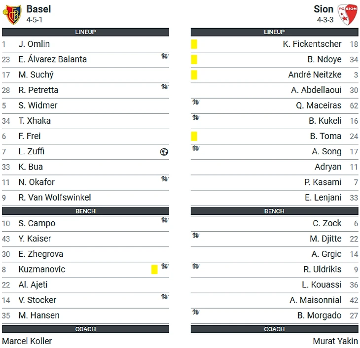 Игра на «Санкт-Якобе», в отличие от той, что состоялась неделю назад, зрелищностью не отличалась. Обе команды играли от обороны, за первый тайм единственным ударом в створ был удар Дзуффи с пенальти, в итоге оказавшийся единственным голом. Да и пенальти-то был очень спорный: Фикенчер первым добрался до мяча, и только потом снёс по инерции Бюа, однако главный арбитр матча Бири показал голкиперу «Сьона» жёлтую и назначил одиннадцатиметровый. Собственно, во втором тайме тоже ничего не изменилось: всё та же однообразная игра от обороны, отсутствие опасных моментов и скоростей и как будто бы желания играть как такового. Единственным, кто более-менее выделялся на поле, оказался неожиданно Здравко Кузманович, на 25-й минуте сменивший получившего повреждение Петретту. Сербский полузащитник, до этого лишь пару раз выходивший на замену, отыграл очень хороший матч: его передачи всегда доходили до адресатов, он хорошо начинал атаки и вносил в игру «Базеля» упорядоченность.