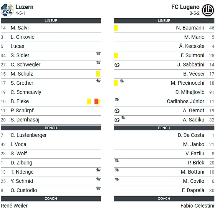 Игра в Люцерне началась для хозяев неплохо: Паскаль Шюрпф уже на первой минуте пробил в перекладину ворот Бауманна, и казалось, что этот эпизод должен задать ритм всей игре. Так, в общем-то, и было: «Люцерн» доминировал практически во всех компонентах, несколько раз проверяли на прочность голкипера «Лугано», но отличиться так и не смогли. Зато смог вернувшийся зимой в Тичино албанский нападающий Армандо Садику: он головой замкнул передачу Карлиньоса с правого фланга и вывел гостей вперёд на 32-й минуте матча. Первый же момент луганези привёл к голу, после которого «Люцерн» начал разваливаться, и ещё до удаления Элеке, чья сложившаяся из двух жёлтых (обе – за то, что заехал локтем по лицу сопернику) красная карточка фактически стала приговором, исход матча был предсказуем. Получив численное преимущество, «Лугано» забил ещё дважды, превратив просто победу в разгром.