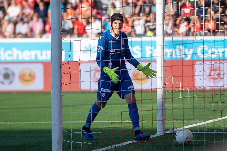 Первый тайм «Тун» начал активно и провёл пару перспективных атак, несколько раз бил по воротам, но ничего толкового извлечь из этих ударов не смог, и после двадцатой минуты привычно расслабился. За что достаточно быстро поплатился: «Спартак» воспользовался первыми же своими моментами и забил до перерыва два мяча: на 22-й минуте ошибся Февр, подарив мяч гостям, что привело к первому голу, а семь минут спустя Штильхарт оставил слишком много пространства Бакаеву – и счёт стал 0:2. После 29-й минуты могло сложиться впечатление, что эти две ошибки надломили оберландцев, однако, зная команду Шнайдера, едва ли стоило ожидать, что они опустят руки. Для «Туна» лететь после первых 45 минут не впервой, и это вряд ли сильно шло вразрез с планом на игру. Понятно, что намного приятнее было бы к перерыву сохранить ворота сухими, но даже с таким неудовлетворительным счётом Марк Шнайдер знает, как работать.