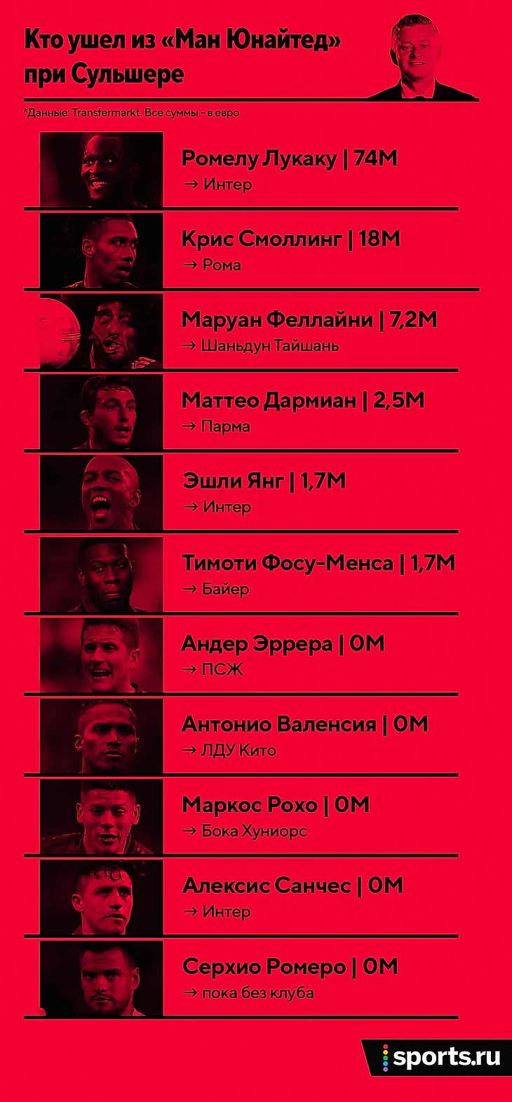 А вот список трансферов на выход при Сульшере. Выглядит не очень солидно, да?