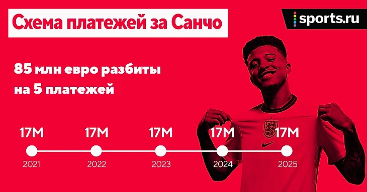 Еще приятней схема выплат: по информации The Athletic, «Юнайтед» будет платить пять лет по 17 млн евро.