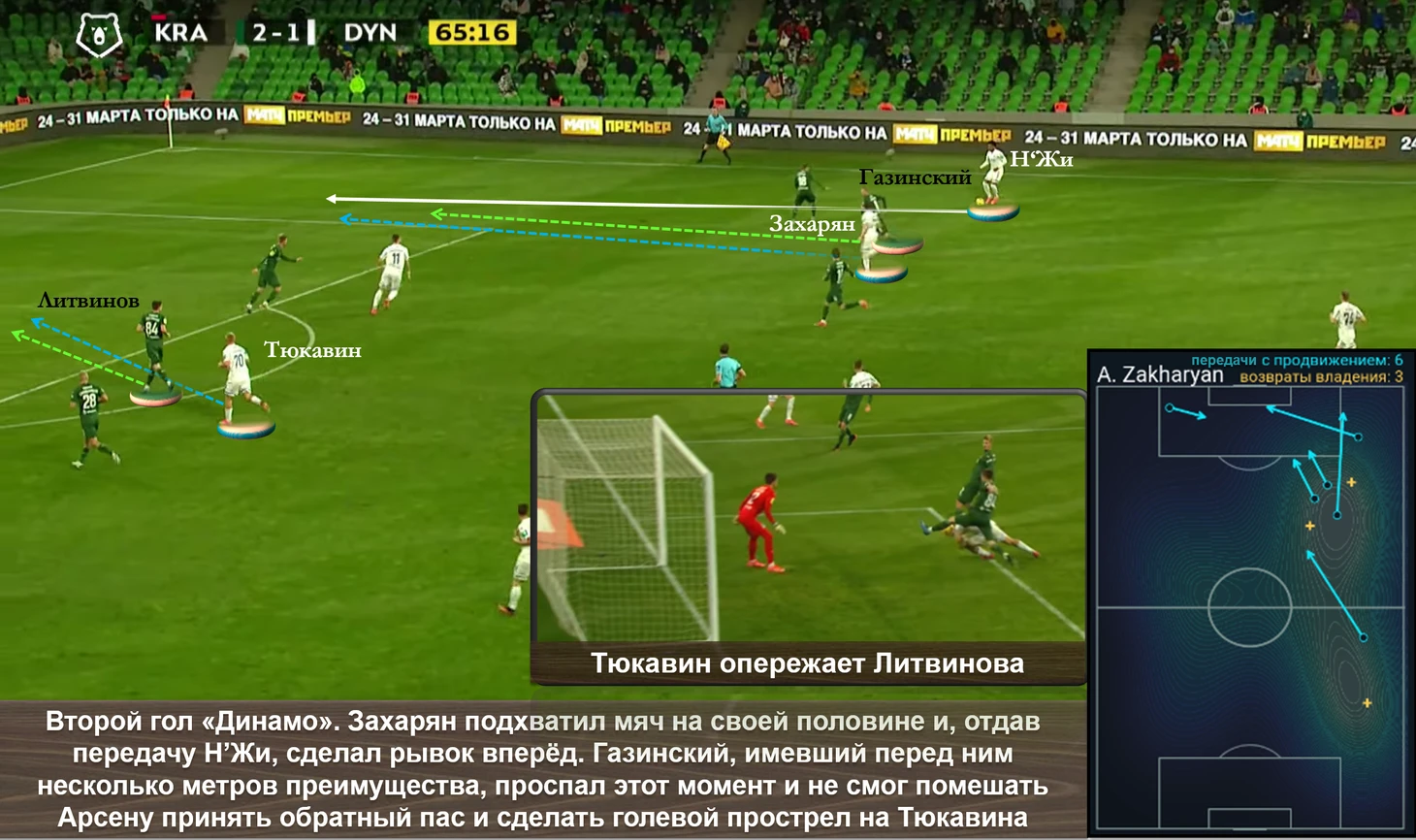 Желание и, главное, умение Захаряна обострить игру (лидер матча по xGChain = 1,6), помноженные на способности Тюкавина грамотно открыться (9 касаний в штрафной соперника - больше всех в матче), оттереть соперника от мяча и нанести плотный акцентированный удар (4 удара - 2 в створ - 2 гола), дарят не только динамовским, но и российским болельщикам надежду на светлое будущее. С ярким и многообещающим настоящим.