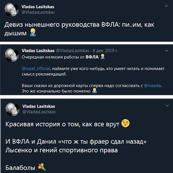 8. Ожидание: Владас Ласицкас (комментатор Евроспорта и муж Марии Ласицкене) ни разу не назовёт представителей Всероссийской федерации дебилами или идиотами