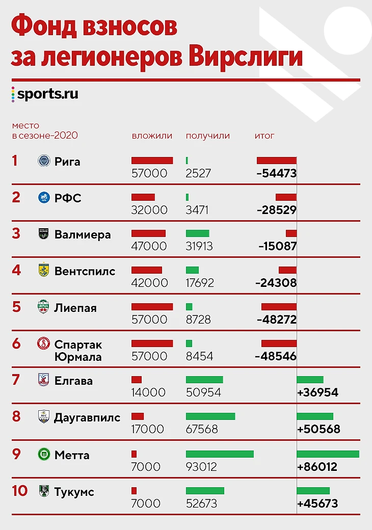 Стоит также отметить, что клуб «Метта», главный бенефициар по выплатам из фонда легионеров в 2020 году, по данным CIES Football Observatory, начал сезон с фантастического показателя и является мировым лидером по доле игрового времени молодых футболистов U-21 – 88,1%. Несмотря на то, что показатели были зафиксированы только после 3 игр чемпионата в 2021 году, это показывает философию клуба. К слову, «Метта» никогда не поднималась выше 7-го места, но играет в Вирслиге уже 10 лет и имеет одну из лучших академий в стране. Новая система позволила ей следовать своей философии и при этом получать финансовую выгоду даже без самых высоких спортивных результатов.