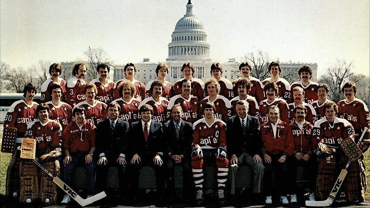Фото состава Кэпиталз на фоне Капитолия, перед сезоном 1980/81. Именно в те года начался расцвет Вашингтона. После первых лет существования команды и проживании на дне турнирной таблицы, команда в начале 80-х начала выбираться из низов НХЛ. Напомню, что Кэпиталз в 1974 году умудрились выдать худший старт франшизы в НХЛ, за сезон одержав всего 8 побед. Команда начала карабкаться к верхам только после прихода нового ген. менеджера Дэвида Пойла, который в итоге 15 лет отработал в Кэпиталз.