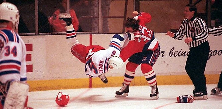 Вот так Хантер мог шваркнуть соперника на лед. За карьеру Дэйл заработал 3565 штрафных минут.