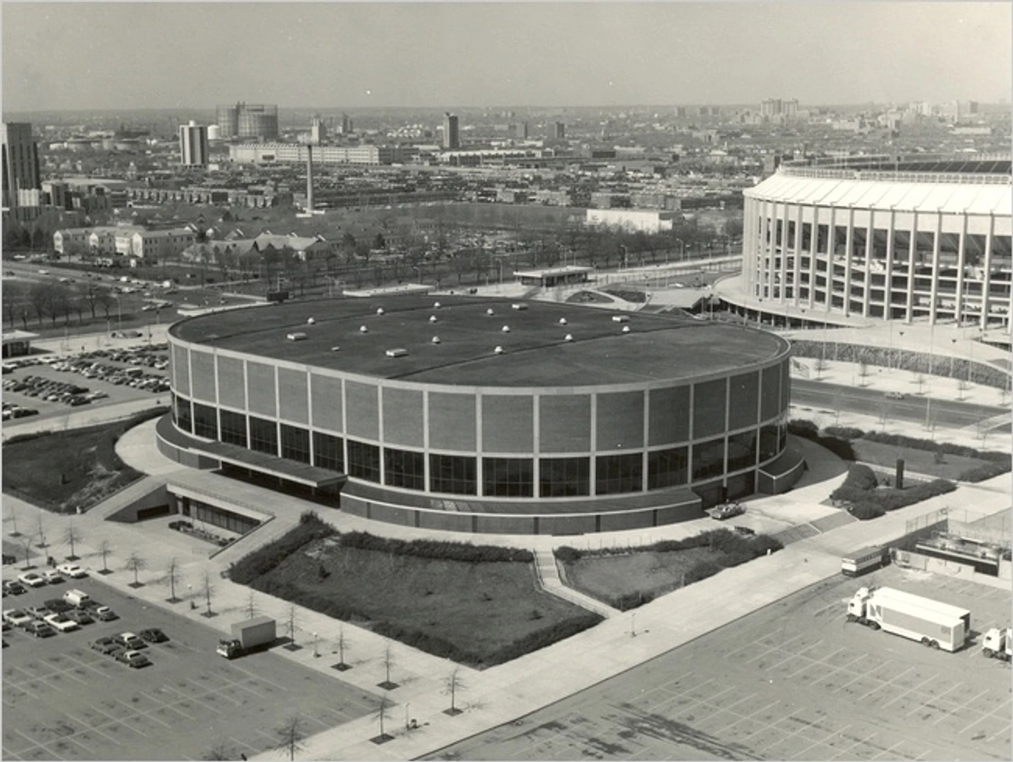 Spectrum, стадион «Филадельфии Флайерз». В 1967 году свои двери открыла новая, современная арена «Спектрум», которая стала домашним стадионом для новой франшизы НХЛ - «Филадельфии Флайерз». Но, сначала знакомство с новой ареной не задалось, уже в марте 1968 года, на арене из-за урагана сорвало крышу, поэтому «Флайерз» на время переехали играть свои матчи в Квебек. Крышу сделали уже к плей-офф того сезона.