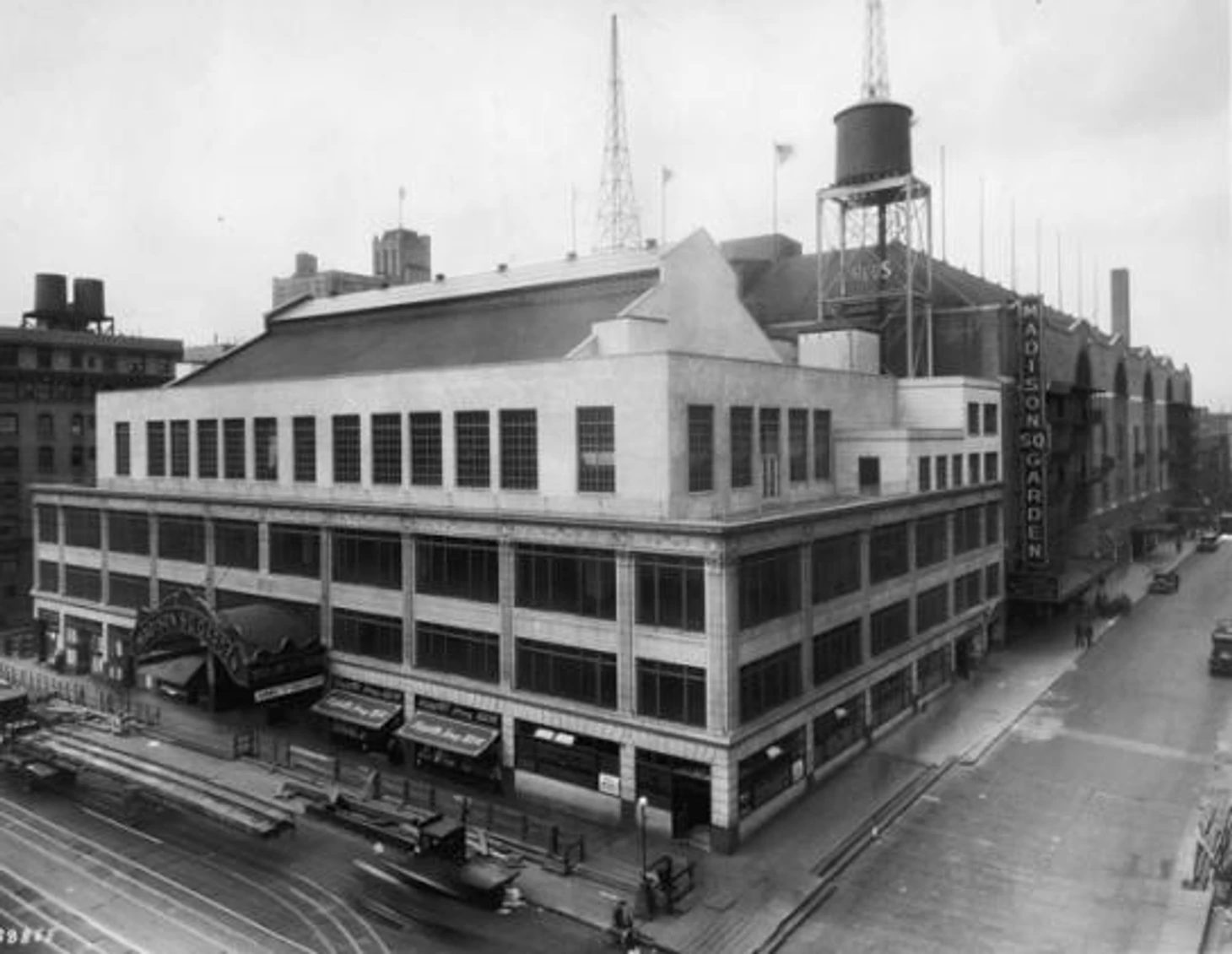 Old Madison Square Garden, стадион «Нью-Йорк Рейнджерс». Это был третьим по счету «Мэдисон Сквер Гарденом» в Нью-Йорке (сейчас «Рейнджерс» играют в четвертом МСГ). Этот стадион был открыт в 1925 году и был домом сразу для двух команд НХЛ - «Нью-Йорк Рейнджерс» и «Нью-Йорк Американс». «Рейнджерс» трижды выигрывали Кубок Стэнли на этом стадионе, но ни разу не играли на нем в плей-офф. Дело в том, что каждую весну на арену приезжал цирк и он был для владельцев арены намного прибыльным, чем хоккей, поэтому во время главных матчей сезона «Рейнджерс» играли исключительно на выезде. «Рейнджерс» играли на этом стадионе до 1968 года, вплоть до сноса стадиона. В том же году команда переехала на новый МСГ, на котором играет и по сей день.