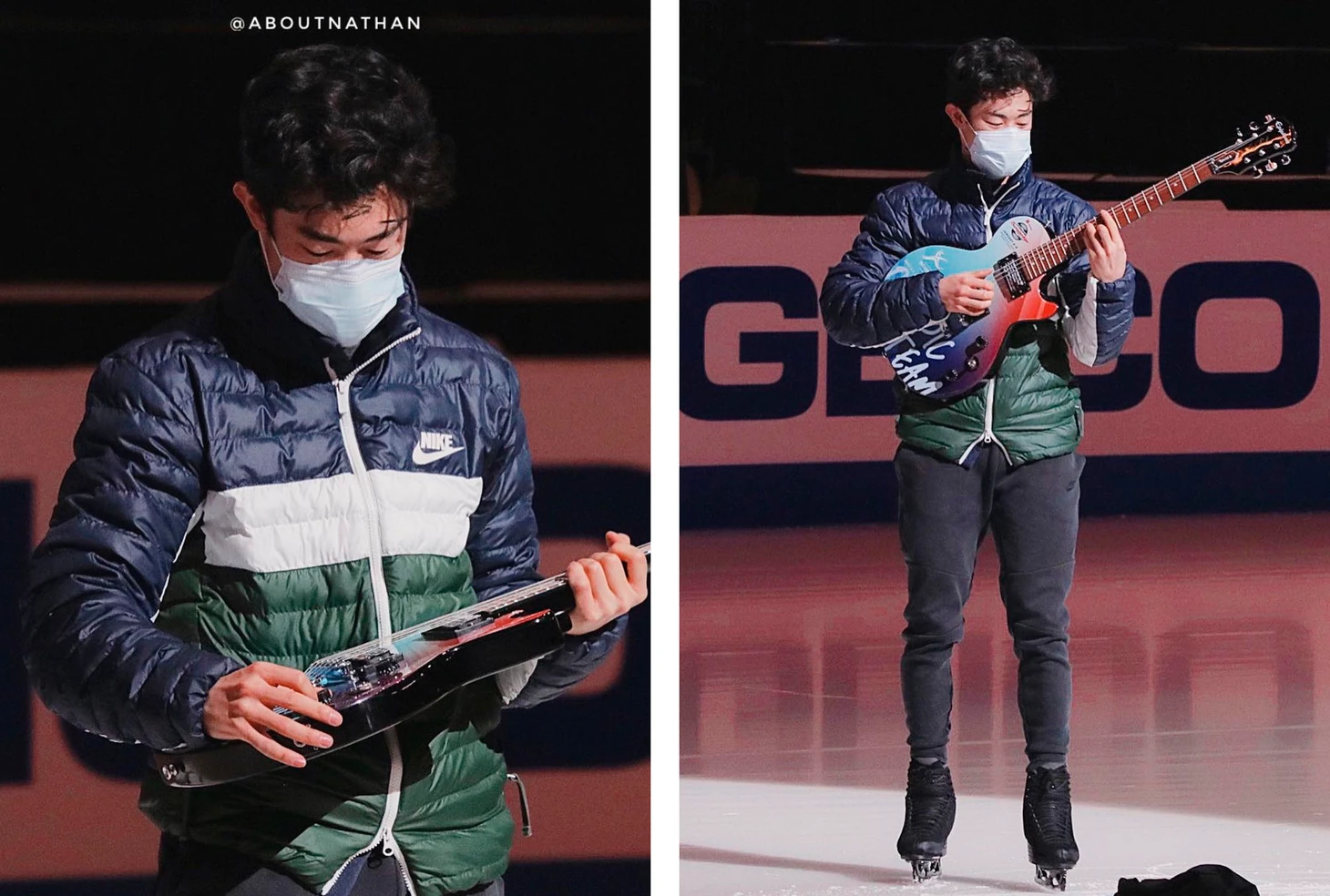 В показательных выступлениях Нейтан решил не кататься, видимо для того, чтобы поберечь бедро, однако он принял участие в представлении олимпийской команды, где каждому из ее участников торжественно вручили по гитаре фирмы Gibson с почетной надписью Olympic Team. Уверены, что Нейтан, который с удовольствием играет на гитаре в свободное время, такой подарок оценил.