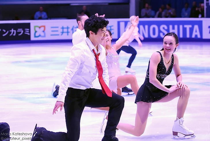 Отдельных слов заслуживает новый костюм Нейтана. Элегантный черный пиджак и брюки в сочетании с футболкой цвета сливок точно передают шарм чуть небрежного французского шика. В легком вальсовом ритме Нейтан парил надо льдом, танцуя воспоминание или грезу о рассветах на Монмартре, наполненных ароматами сирени, свежесваренного кофе и предвкушением любви, а певучие руки то словно взмахивали кистью, рисуя портрет романтической героини, то увлекали возлюбленную по волнам музыки в мир, где живут и любят всем сердцем.