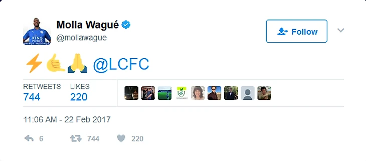 - Насчет фотошопа - не совсем так. Там в синей футболке Ваге сыграл за Лестер U-23, 7 февраля, а следующие картинки из дебютного матча малийца в "правильном" Лестере в кубковом матче против Миллуолла 18 февраля.
