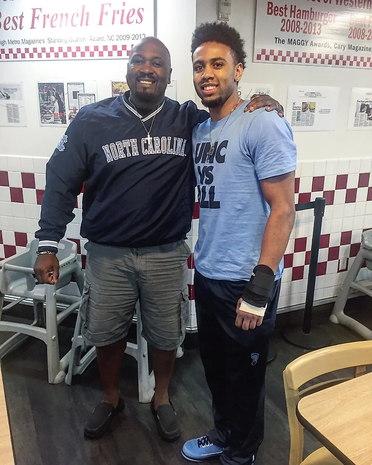 Папа вышел из тюрьмы, мне было 12. С того момента мы общаемся. Когда я был старшекурсником в Канзасе, его можно было видеть за скамейкой в майке с моим номером, безумно болея (за нас). Он допустил ошибки и не был со мной рядом в раннем детстве, но позднее он прикладывал много усилии, чтобы удерживать меня на правильном пути".