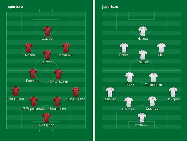 Психологически сборная России должна иметь перевес, однако для удачного результата сегодня нужно не только перекрыть Гамшика и других словацких лидеров, но и показать что-то гораздо более качественное, чем с Англией, в плане креатива. Для этого удачной игры на флангах будет мало – в матчах равных по классу и стилю команд (последние две встречи со словаками закончились для нас минимальным поражением и победой) обычно побеждает тот, кто выигрывает середину поля. Поэтому так важно сегодня найти способ поставок мяча Дзюбе, который невозможен без стройного выхода из обороны в атаку. Рискнет ли в этой связи Слуцкий выпустить более креативного, чем Нойштедтер полузащитника (например, Глушакова или Мамаева), или все оставит как есть?