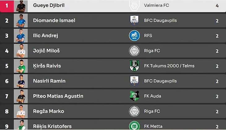 Источник: optibetvirsliga.com, soccer365.ru, lff.lv, sportacentrs.com