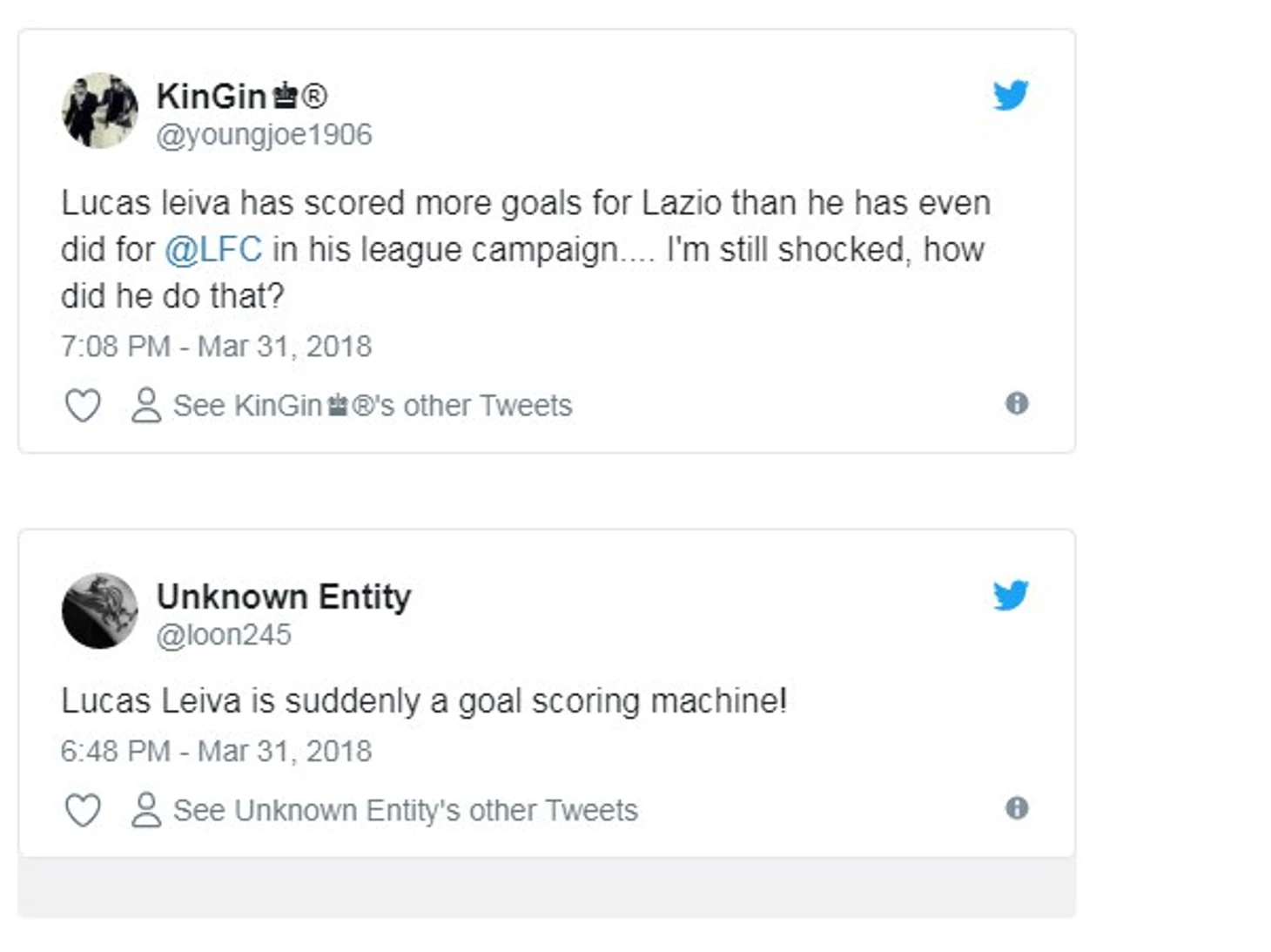 В эти теплые весенние деньки болельщики «Ливерпуля» передают привет Лукасу Лейве, который уже в этом сезоне забил за «Лацио» больше, чем за последние восемь лет в составе англичан.