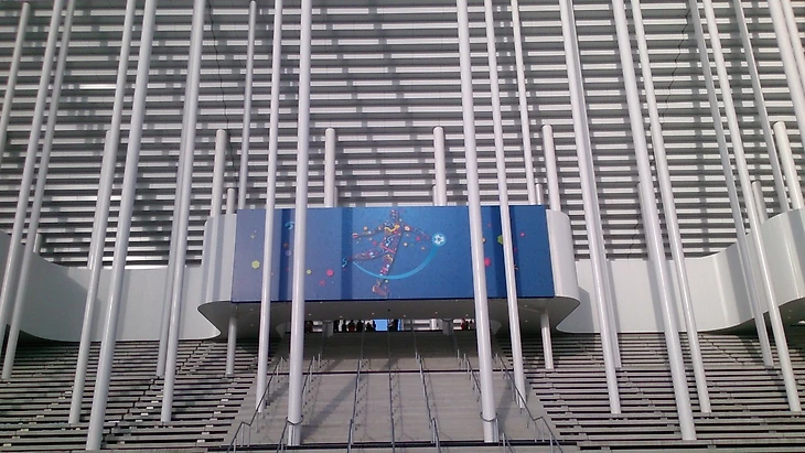 Фан-зона располагается на площади Quinconces. Это такой своеобразный парк без деревьев, или, скорее, лужайка без травы в центре города. К тому моменту я провел в Бордо уже два дня, а мои кроссовки ещё долго носили пыль с гравия, которым усыпана эта площадь перед экраном.