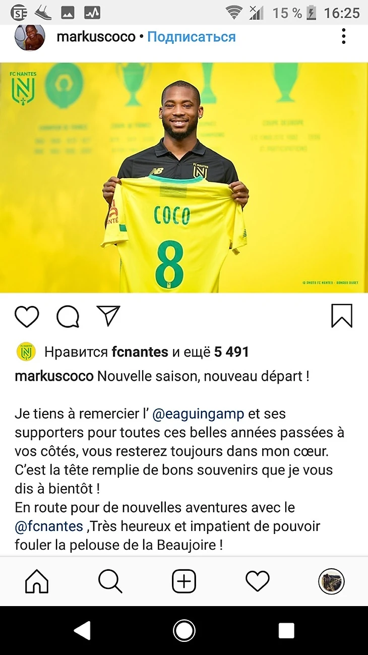Пару дней назад в стан «канареек» вошел Альбан Лафон. А 16 июля «Нант» официально объявил о переходе Маркуса Коко.