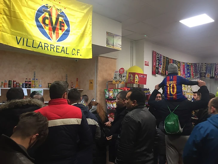 Прямо на входе в мегастор стоит высокая колонка, и из нее, вместо призывов сражаться и захватить настоящее Желтое моря, льется испанская музыка, а местный Боярский хриплым голосом шепчет что-то о любви. Под его песни болельщики чокаются пластиковыми стаканами и постепенно расходятся по секторам. Никакой агрессии к сопернику, все по-испански спокойно и подозрительно тихо: у «Барсы» и «Вильярреала» нет территориальных споров, а Дениса Черышева на «Камп Ноу» считают национальным героем. Поэтому никаких оскорбительных кричалок и провокаций при входе на сектора, хотя всего в десятках километров оттуда «Барселону» всем городом называли «путой» и ломали ее игроков пластиковой бутылкой.