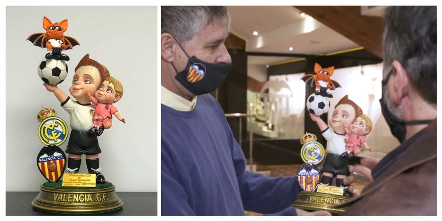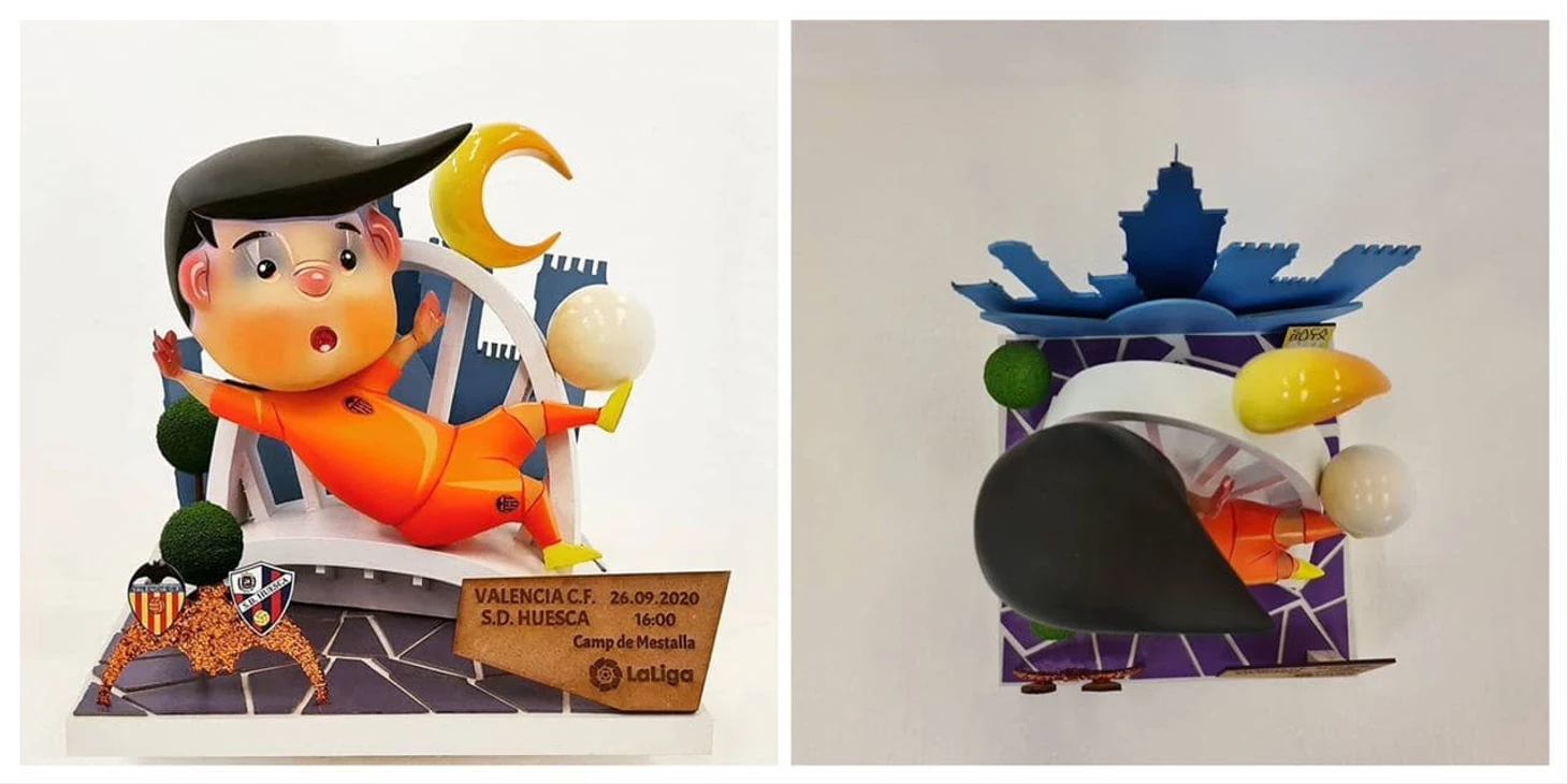 «Я хотел показать, что такое валенсийская семья, поэтому я поставил отца с сыном. В этом случае также, чтобы отдать дань уважения команде гостей, «Реалу Мадрид», я хотел, чтобы там была отсылка и к ним, для чего одел сына в цвета клуба-гостя… Статуэтка была сделана с помощью 3D-печати, затем мы подогнали детали», – объясняет художник делегации клуба, которые присутствовали, как и в предыдущих случаях, в процессе создания статуэтки.