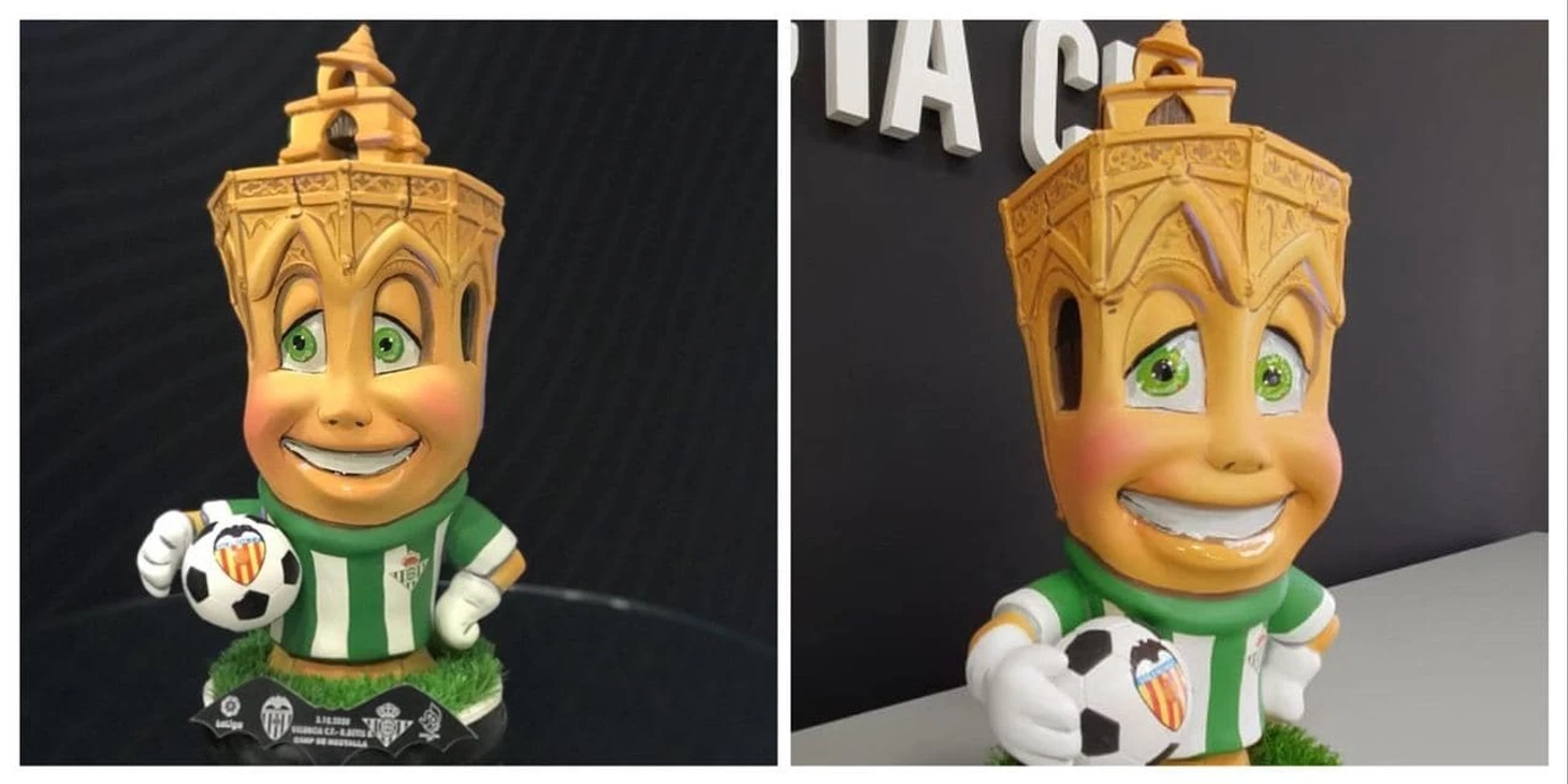 Его партнёр Хуанхо Севиор, со своей стороны, говорит: «При разработке дизайна идея заключалась в том, чтобы представить «Валенсию» и что может быть лучше, чем колокольня Эль Мигелете в костюме футболиста». Эта культовая колокольня, башня Кафедрального собора Валенсии, носит футболку «Реала Бетис» и держит в руках мяч с эмблемой «Валенсии». Зачем? «Чтобы изобразить дружелюбие и спортивное мастерство в симпатичной фигуре так, чтобы это понравилось всем», – добавляет художник. И Хосе Приоль, и Хуанхо Севиор представили статуэтку перед игрой двум послам и легендам «Валенсии»: Мигелю Тендильо и Рикардо Ариасу.