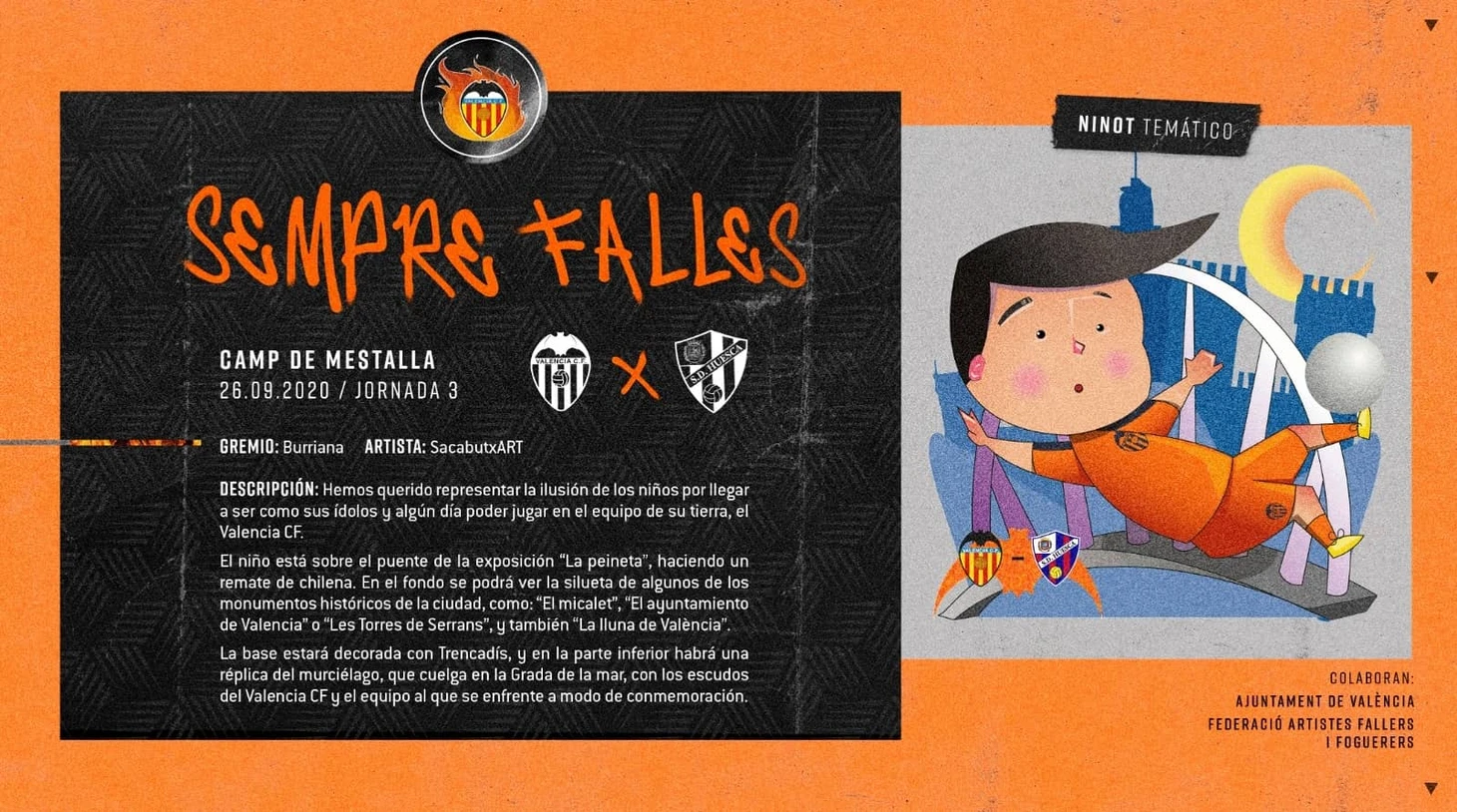 26 сентября начал свой путь проект «Sempre Falles» в рамках кампании «Sempre Valencia», которая направлена на поддержку валенсийского сообщества, пострадавшего из-за пандемии COVID-19. Эта инициатива, осуществляемая вместе с городским советом Валенсии, послужит продвижению бренда «Валенсии» и поддержит союз художников, делая их работы более заметными посредством предоставления тематического подарка гостевым командам на «Месталье».