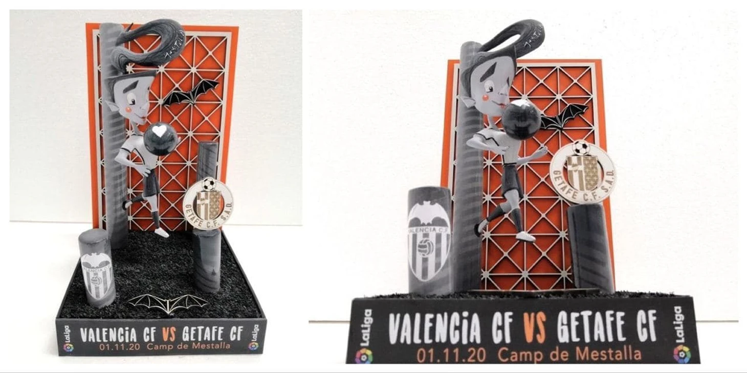 Последняя представленная на данный момент – статуэтка для матча с «Реалом Мадрид». Художнику Хуану Альберто Наварро из союза Аликанте было поручено создать произведение искусства, в котором он хотел отдать дань уважения семье, создав девятку, в которой отец в футболке «Валенсии» держит сына, одетого в цвета «Реала Мадрид». Эта статуэтка будет передана гостям «Местальи» перед матчем.
