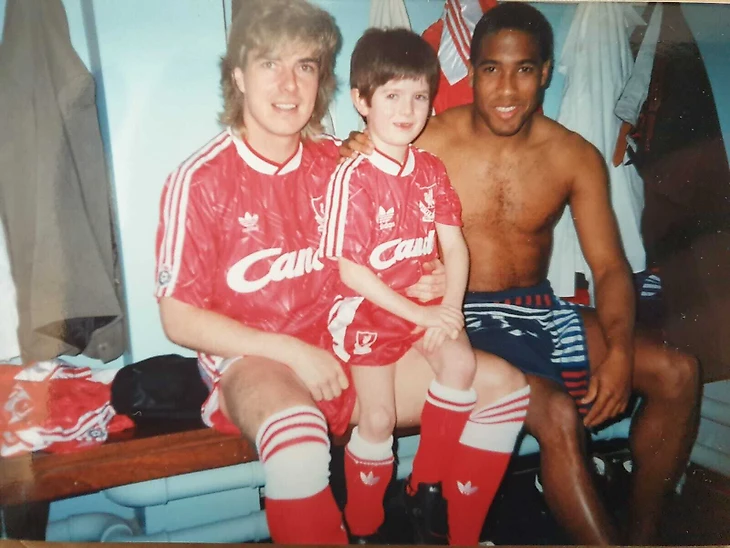 Пол Эшкрофт позирует для фотографии со звездами «Ливерпуля» Венисоном и Барнсом перед захватывающей встречей на Гудисон Парк в феврале 1991 года (Фото: Джон Эшкрофт)