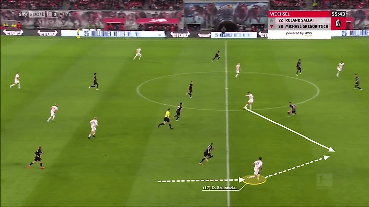 Точно так же, когда «Лейпциг» вырвался вперед, Собослаи сохранил ширину команды...