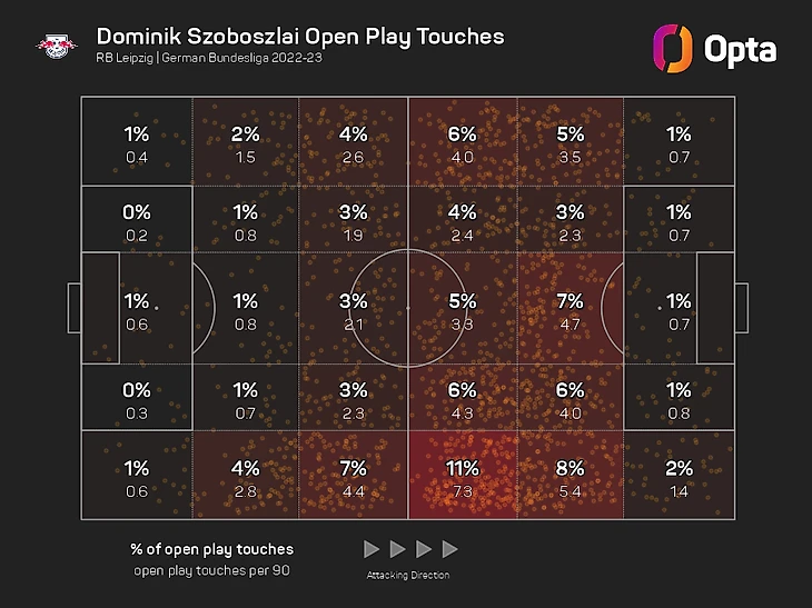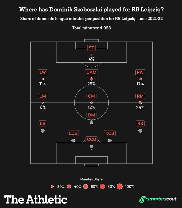 Несмотря на то, что в прошлом сезоне Собослаи часто играл на позиции правого полузащитника в схеме 4-2-2-2 или 4-2-3-1 за «Лейпциг», его вряд-ли можно назвать крайним вингером. Скорее, он креативный атакующий полузащитник, который играет широко — важная часть задания на роль правой «десятки» в квадрате полузащиты.
