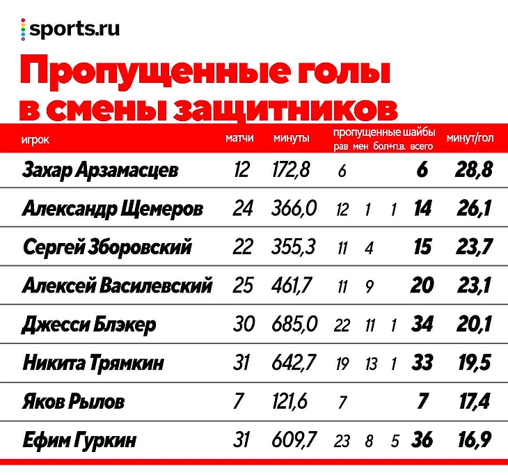 Но и это еще не все, отдельный пункт – потери в своей зоне, после которых были пропущены шайбы.