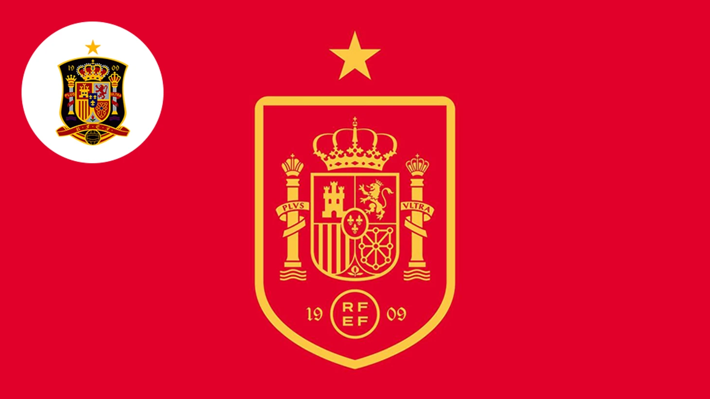 Вместе с новым логотипом Королевской федерации футбола Испании (RFEF) также была представлена новая эмблема национальной команды. Логотип «красной фурии» выполнен на основе предыдущего герба, составные элементы которого остались те же, получив при этом определенное визуальное упрощение. Эмблема имеет монохромное исполнение и будет использоваться в нескольких традиционных для команды цветовых схемах.