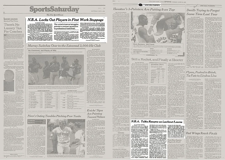 P.S.: Следующим летом случился еще один локаут, но получил название «трехчасовая война» — после объявления локаута лига и профсоюз за несколько часов договорились о том, как делить доходы от телевидения. Так что баскетбол, по сути, не останавливался, поэтому в наш список этот локаут не попал.