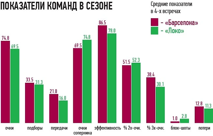 Хуану Карлосу Наварро и Анте Томичу «Локо» был как-то особенно любим. В матчах с краснодарцами первый набирал на 2,5 очка больше, чем в среднем за сезон, второй – на 3. Зато результативность Джастина Доэллмана тогда удалось сократить с 9,8 до 8,5.